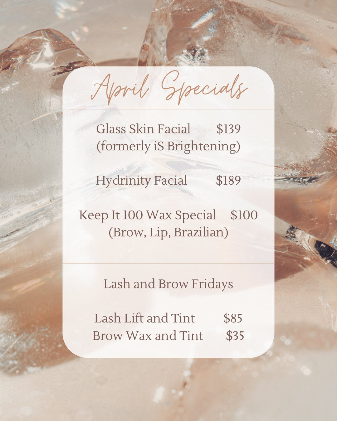 We are committed to using the highest quality products on our clients.  A great treatment, followed by an at home regimen is the best way to get the results you want. Together, we will find the products that will work best for your skin type and quickest way to achieve your goals.